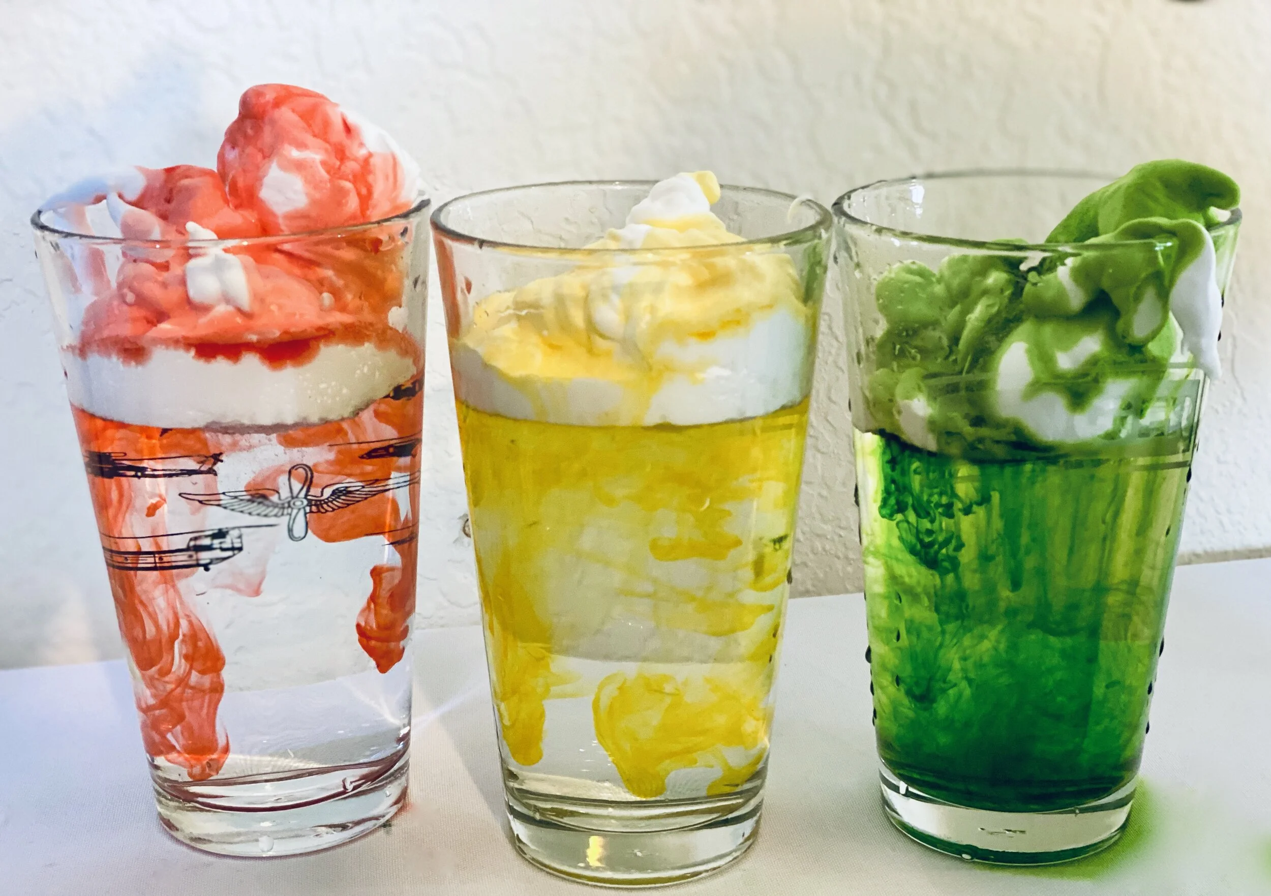 Rain Clouds in a Jar- This is a colorful way to show how when clouds get “too full” of water, the water falls as precipitation. Fill a clear glass or jar 3/4 of the way with water. Spray shaving cream on top to represent the cloud. While that settles, mix a few small cups with water and food coloring. using a small spoor or dropper, place drops of the colored water onto your clouds. Watch the rain fall and swirl into the water! It’s not exactly scientific but fun, nonetheless!